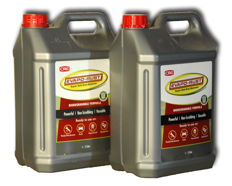 Køb 2 X 5 Liter Evapo-Rust og spar 10% Evapo-Rust er den ultimative, sikre og ugiftige rustfjerner som er nem at bruge. Evapo-Rust fjerner kun rust og angriber ikke andre materialer som aluminium, messing, gummi, pakninger og mange andre materialer.